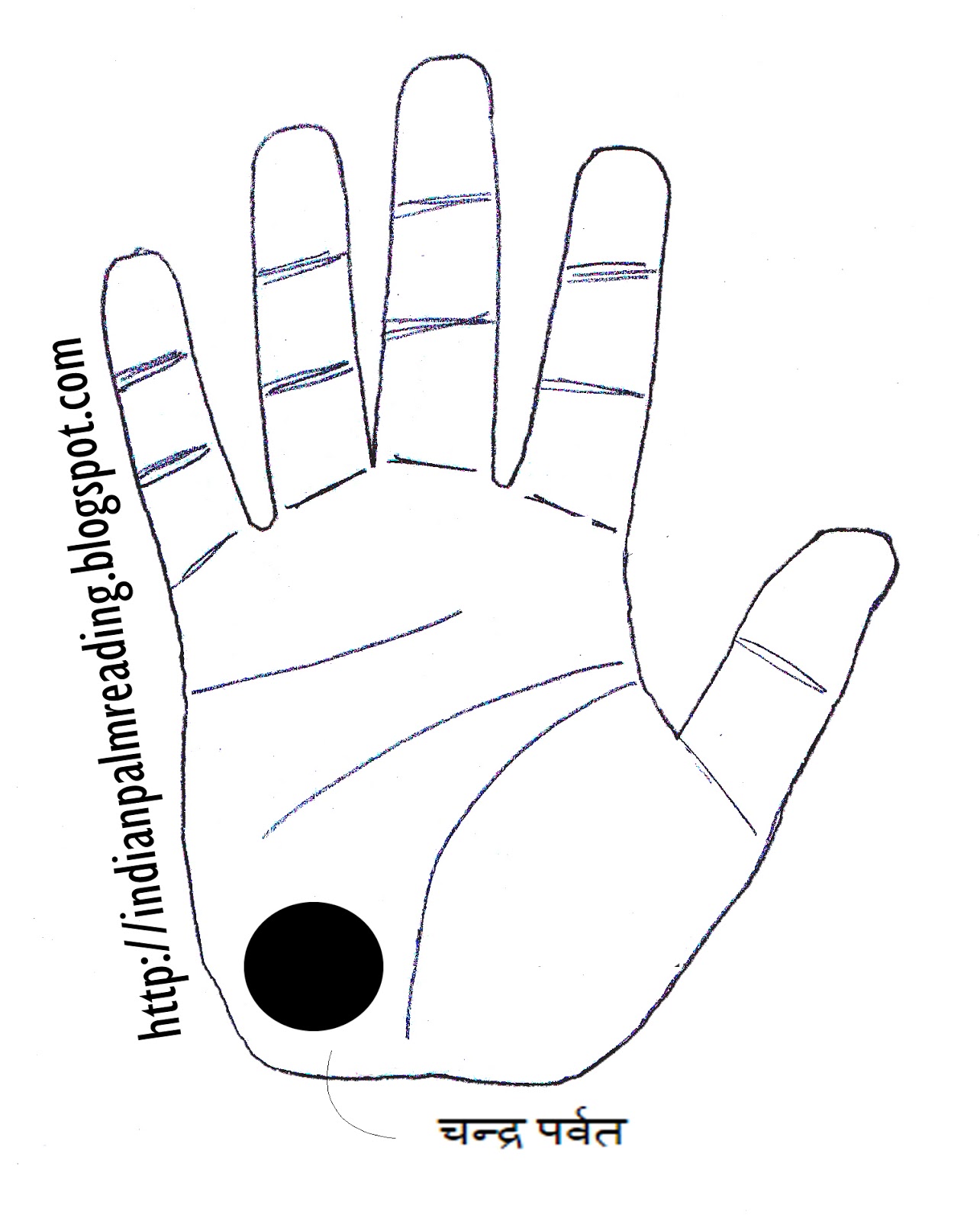 यदि चंद्र पर्वत का झुकाव हथेली के बाहर की ओर है तो ऐसे व्यक्ति भोगी एवं कामी होते है, यदि चंद्र पर्वत पर गोल वृत्त हो तथा कुछ रेखाएं मस्तिष्क रेखा से निकलकर इस पर्वत तक पहुंचती हो तो वह व्यक्ति राजनीतिक एवं व्यापारिक दृष्टी से विदेशयात्रा अवश्य करता है, चंद्र पर्वत पर शंख का चिन्ह प्रायः अशुभ माना जाता है, अगर ये चिन्ह चन्द्र पर्वत पर है तो ऐसा व्यक्ति सफलता प्राप्त करने के लिए बहुत संघर्ष करता है,एवं कठोर परिश्रम के बाद ही सफलताए प्राप्त करता है।